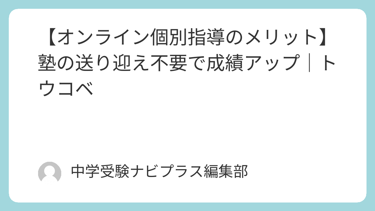 オンライン個別指導のメリット|塾の送り迎え不要で成績アップ【トウコベ】