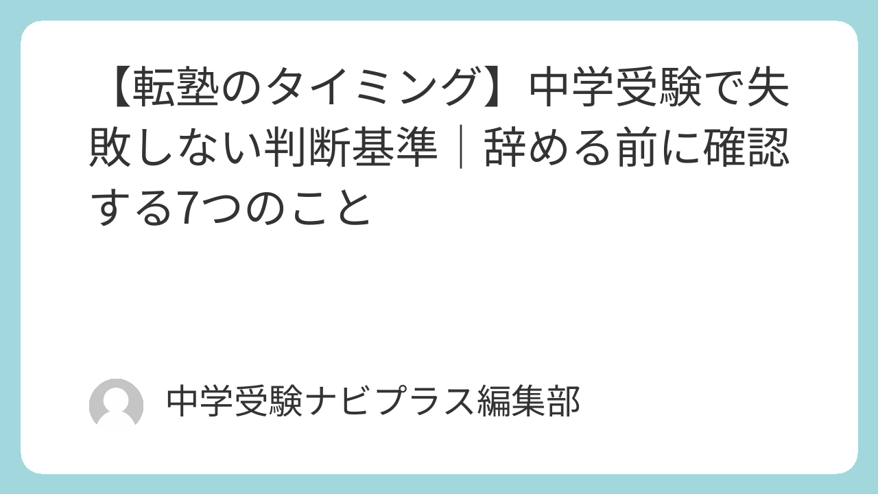 【転塾のタイミング】中学受験で失敗しない判断基準|辞める前に確認する7つのこと